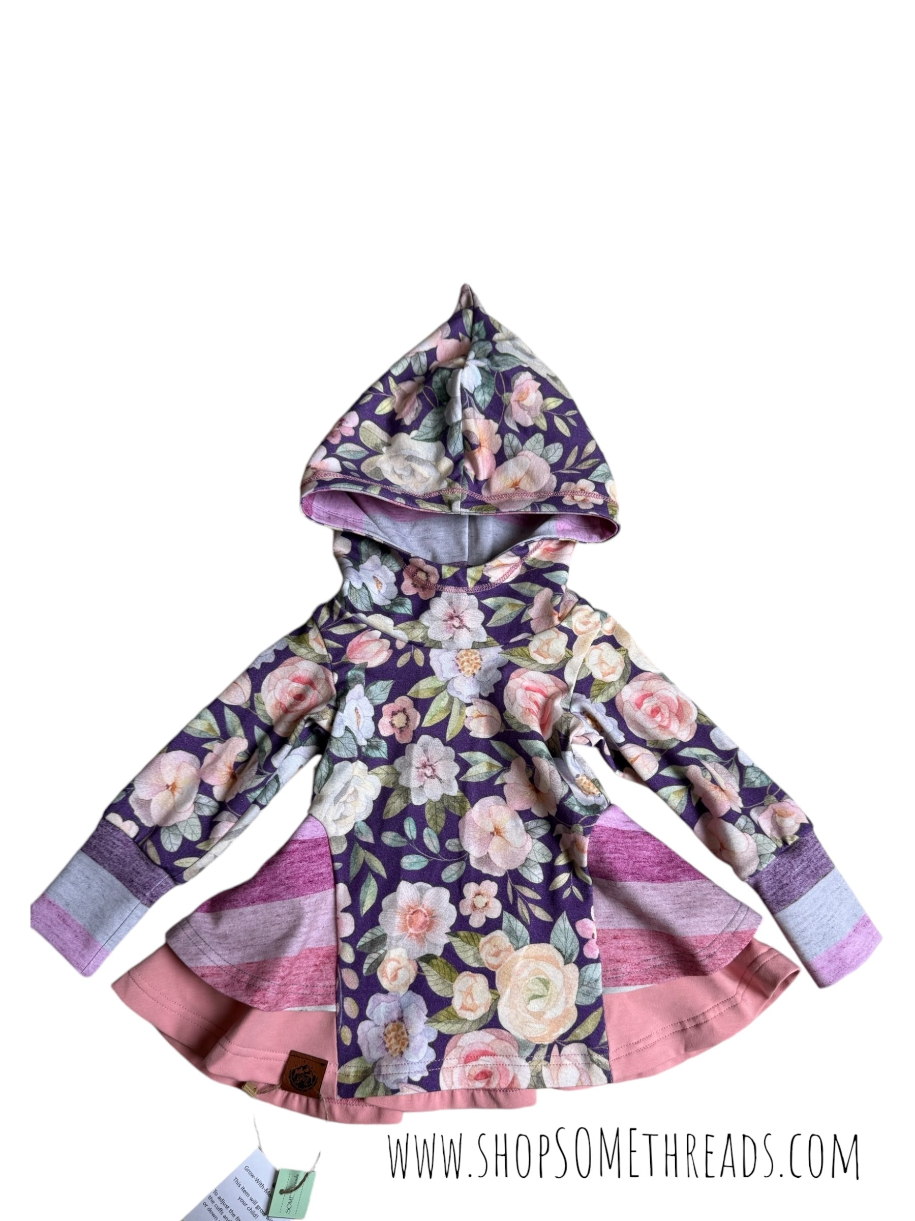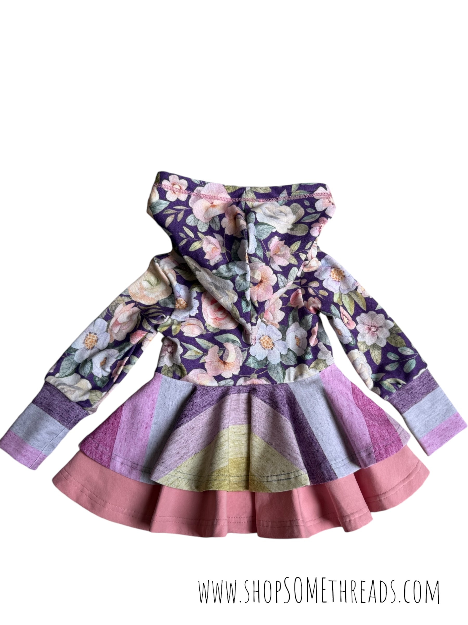 Made from organic cotton lycra floral jersey and cotton lycra striped jersey.